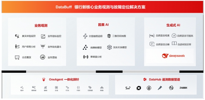 銀行新一代核心的復(fù)雜性帶來了全新的運(yùn)行穩(wěn)定性挑戰(zhàn),傳統(tǒng)監(jiān)控技術(shù)面臨嚴(yán)重瓶頸。DataBuff一體化觀測(cè)平臺(tái),通過創(chuàng)新的方式將“業(yè)務(wù)觀測(cè)”、“因果AI”、“生成式AI” 三大領(lǐng)先技術(shù)深度融合,幫助銀行全面解決新一代核心系統(tǒng)的運(yùn)行穩(wěn)定性問題。該平臺(tái)能夠深度感知新一代核心的業(yè)務(wù)運(yùn)行狀態(tài),全面梳理消費(fèi)者的業(yè)務(wù)旅程,構(gòu)建“以業(yè)務(wù)為中心”的新一代監(jiān)控管理體系,提供端到端的交易級(jí)鏈路追蹤能力,快速發(fā)現(xiàn)問題、定位問題、處理問題,實(shí)現(xiàn)故障定位的一鍵直達(dá)。