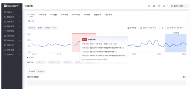 DataBuff 新核心業(yè)務(wù)觀測(cè)與故障定位解決方案主要包括三個(gè)方面的功能:基于業(yè)務(wù)觀測(cè)的用戶旅程分析、基于因果AI的故障定位能力、基于生成式AI的運(yùn)維自動(dòng)化能力,以下展開詳細(xì)說明:
