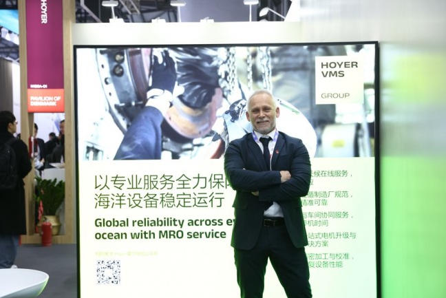 針對船舶全生命周期各環節的需求,Hoyer VMS Group重點呈現了三大核心服務優勢:其一,在登船作業時可同步完成發動機/推進系統故障修復與電動機性能優化,實現高效協同運維;其二,交付電動型、柴油型電動機及發動機等設備時,同步附上覆蓋設備全生命周期的服務承諾,為客戶筑牢權益保障;其三,通過一體化解決方案有效降低項目管理復雜度,實現性能升級、能效優化與可持續發展效益的多重突破。
